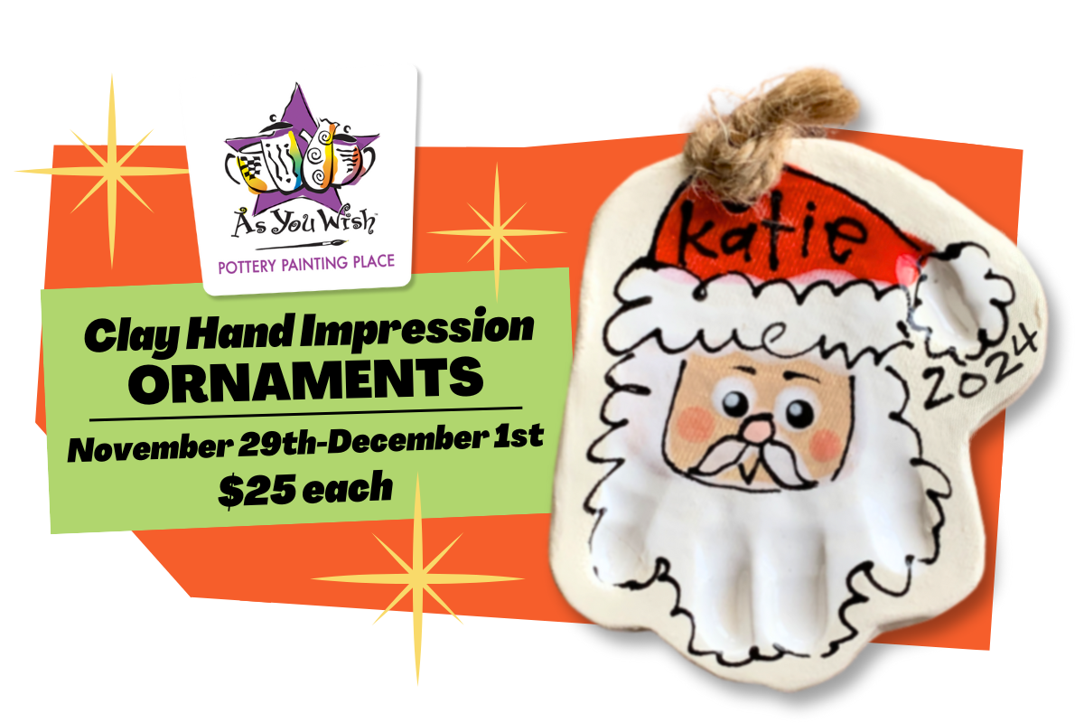 Gear up for holiday gifts with ease by leaving the work to us! Make a 15 minute appointment to stop by and capture your little one’s handprints in clay, and our team will paint, glaze, and kiln-fire it into a precious ornament that will be cherished year after year. (Recommended for kids ages 10 and…