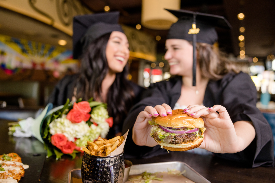 Deal offered from May 9, 2025 – June 9, 2025 (excludes May 10, 2025, May 17, 2025 & May 27, 2025). Valid at Westgate Entertainment District location only. Not valid with any other specials, coupons, promotions, or discounts. Dine-in only unless otherwise noted. One discount or offer per graduate (must be in graduation cap & gown or show other official proof of 2025 graduation). Tenant reserves the right to withdraw or change the offer’s terms & conditions at any time at the company’s discretion & without notice. Additional restrictions & exclusions may apply. See tenant for details.
