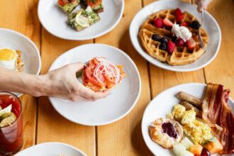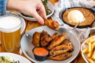 The Sunday brunch buffet features staples like biscuits & gravy, yogurt & granola parfaits, fresh fruit, vanilla bourbon french toast, sweet treats & a taco/fajita station including steak or chicken tinga, guacamole with chips & an assortment of salsas. Adults are priced at $23.99 & kids at $10.99 (until September 10th when Chicken N Pickle will offer the buffet from 9a-2p through the NFL season).