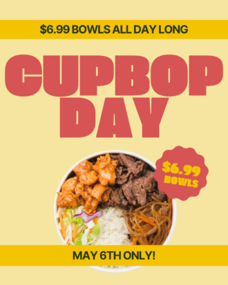 Cupbop serves Korean BBQ in a cup. Bop (밥) means “steamed rice” in Korean so Cupbop simply means “steamed rice in a cup.” Adding our specialty sauces and twists to authentic Korean recipes, we have created a new style of Korean food!